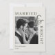 Modern classic newlywed Christmas cards featuring "married and bright" bold typography design with personalized holiday message and photo.