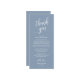 Add a personal and thoughtful touch to your wedding celebration with this modern classy romance wedding dinner place setting thank you card. Designed to be placed at each guest’s seat, this elegant piece of wedding stationery helps you express gratitude and create a warm, welcoming atmosphere. With its modern minimalist elegant dusty blue theme, it’s perfect for enhancing your wedding dinner, reception, or rehearsal dinner décor. Customise with your names, wedding date, or a special message to make it truly yours.