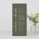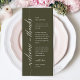Make a heartfelt first impression at your wedding reception with this sophisticated "Welcome and thanks" place card—designed to rest beautifully on each guest’s plate. Featuring graceful script typography and a timeless layout, this elegant card warmly greets your loved ones while expressing gratitude for sharing your special day. Ideal as a dual-purpose place card & welcome note—combine sentiment and function without cluttering your tables-cape. Designed for couples who value refined details, this card complements modern and luxe wedding olive green theme.