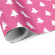 Modern Classy White Christmas Trees on Pink Wrapping Paper