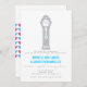 Announce your big day! Bold fonts for a modern and sleek look. A little retro charm with the vintage Grandfather Clock Illustration. Heart pattern on reverse for added pop of colour. Room for website or RSVP info on backside. Pattern is removable, if desired.