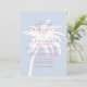 A stylish coastal wedding invitation featuring a bold white palm tree silhouette against a soft blue background with modern pink typography. Perfect for beach, nautical, or destination weddings, this design blends a relaxed seaside vibe with contemporary elegance. Ideal for couples looking for a chic Hamptons-inspired or tropical coastal aesthetic.