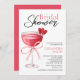 Modern and elegant Bridal Shower invitation featuring watercolor cocktail drink tight with a pink bow and vibrant calligraphy text.