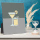 Modern bar art features white and pale yellow cocktail graphics on two tone grey colorblock background