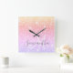 Modern Colorful Glitter Sparkles Personalized Name Square Wall Clock