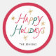 A bright and modern “Happy Holidays” round sticker featuring colorful holiday lettering—perfect for sealing envelopes, dressing up gifts, or adding a cheerful touch to your seasonal packaging. Personalize it for parties, small businesses, or family holiday mail. Explore the matching pieces in this collection for a coordinated holiday look.