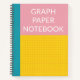 Stylish graph paper notebook with a bold colour block cover design in pink, yellow, and aqua blue.
