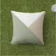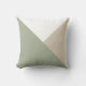 This trendy modern pillow features large triangular colour blocks in sage green, beige and white.