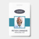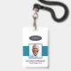 A modern and simple badge that does not distract from the important details. Easy to read from afar. Add a custom logo and company details. Add the employee's name, photo, and professional title. The bar of colour can be modified to match the company's official colours. At the back, add more information such as return address and the employee's ID number. Perfect for oval shaped logos.