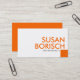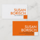 Eye-catching clean modern design. Minimalist style with orange name text and matching orange square at the front side and colours switched at the back side, meaning the orange colour of the text from the front side now fills the background and the text is white. Below is a link to the same design but in a different colour variation. Modern Minimalism Dark Grey Business Card Template with a red square. This version of a design has big bold light grey font for name. Very contemporary and unique sleek design made to impress your client. He will also be able to find your business card from a pile of his cards easily because of its bold and distinctive design.