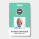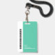 A modern and simple badge that does not distract from the important details. Easy to read from afar. Add a custom logo and company details. Add the employee's name, photo, and professional title. The bar of colour can be modified to match the company's official colours. At the back, add more information such as return address and the employee's ID number. Perfect for round shaped logos.