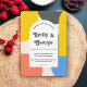 This modern wedding invitation is perfect for the couple that wants to make a stylish statement. The invitation features bold retro calligraphy on a white arch with a vibrant and groovy abstract arches background. The artistic combination of old and new gives any event an inviting and unique touch. Whether you’re planning a simple gathering or a big celebration, this invitation will make sure your guests know it’s an occasion to remember.