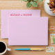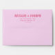 A retro modern hand written bright colourful wedding envelope. Which features bold bride and groom's names in red magenta colour. And personalised return address . On simple blush pale vintage colour background. Which suits the whole wedding suite.