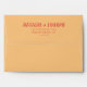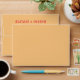 A retro modern hand written bright colourful wedding envelope. Which features bold bride and groom's names in red magenta colour. And personalised return address . On simple vintage colour background. Which suits the whole wedding suite.