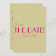 This modern & retro funky minimalist Wedding Save The Date Template is great for you. If you are looking for a pretty, elegant and easy to customise Wedding Save The Date Template .A very elegant simple green and pink script wedding save the date. Which features minimal red magenta save the date bold typography on plain wasabi green boho background. Grab this stylish wedding save the date and make your invites truly engaged.