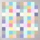 This is a trendy and stylish design featuring multicolored squares arranged in a chequered pattern on a neutral grid background. The squares come in various colours like blue, green, pink, purple, yellow, grey, orange, and rainbow pastel shades, arranged to create a unique and joyful geometric chequerboard design.