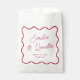 Wedding favour bags to match our Wavy Frame Retro Wedding collection. This design features the couple's names in chic script calligraphy and the text "thank you" framed by a hand-drawn wavy border. Edit the wording to fit your personal style and theme. Perfect for filling with sweet treats, small gifts, or other favours for your guests to take home. View the collection linked on this page for the full wedding suite. Feel free to message me with any questions, I'll be happy to help!