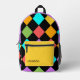 This colourful geometric diamond pattern backpack combines retro flair with modern design, making it a bold and stylish choice for those who love vibrant, eye-catching accessories. Featuring a striking multicolor layout, it blends nostalgic charm with contemporary functionality. Ideal for school, travel, or as a personalised monogram gift, this backpack is designed to suit boys, girls, guys, and anyone with a love for creative, expressive style. Whether you're heading back to class, commuting, or gifting it to a student, teen, or design-loving professional, this backpack makes a unique statement while offering everyday practicality and comfort.