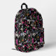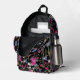 Modern Colourful Floral Pattern Black Custom Name Printed Backpack