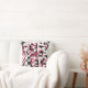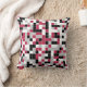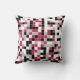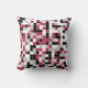 This colourful throw pillow features a multicolored geometric pattern in Viva Magenta, black, grey and white, and white grid. The squares are coloured in a random pattern which is the same on the back. You can edit the colours in the Design tool.