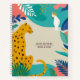 This modern, stylish notebook features a hand drawn leopard and bird ( cockatiel ), along with jungle leaves and random, artistic shapes. The back of the book contains a coordinating pattern of tropical leaves. The colour scheme consists of light tan, aqua / teal, blue, coral, white, green, pink, and golden yellow. Great for Back to School, homeschool - kids, teens, moms - whoever! Easy to personalise for a wonderful gift!
