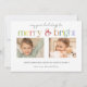Modern Colourful Merry & Bright Typography 2-Photo Holiday Card