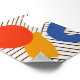 A vibrant boho abstract geometric print featuring bold colourful shapes in red, blue, mustard yellow, pink, and white set against a striped black-and-white background. The playful combination of organic forms and modern lines makes this artwork a perfect statement piece for living rooms, offices, bedrooms, or creative studios. Add a pop of colour and a touch of modern minimalism to your walls with this unique abstract composition.