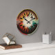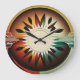 A bright and colourful modern wall clock with a native american inspired theme using a traditional southwestern colour palette with a contemporary abstract shapes design for a modern stylish touch