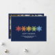 Simple modern Christmas Holiday card featuring a row of brightly coloured holiday snowflakes and family photo (back). Minimalist typography. Clean simple design. All text areas personalizable. Contact for assistance in personalising or customising to your individual wishes. Happy holidays!