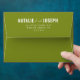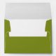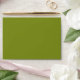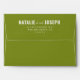 A retro modern hand written bright colourful wedding envelope. Which features bold bride and groom's names in cream colour on olivr green background. And personalised return address. Which suits the whole wedding suite.