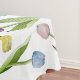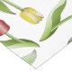 The product design features a pattern of colourful tulip flowers in purple, red, pink, blue, and yellow. This botanical illustration makes an elegant modern and unique tablecloth.