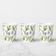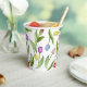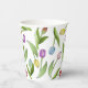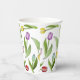 The product design features a pattern of colourful tulip flowers in purple, red, pink, blue, and yellow. This botanical illustration makes modern and unique paper cups for her birthday, Easter, Mother's Day, or wedding party.