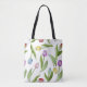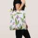 The product design features a pattern of colourful tulip flowers in purple, red, pink, blue, and yellow. This botanical illustration makes an elegant modern and unique tote bag - Gift idea for birthday, Easter, Mother’s Day, wedding, and more!