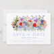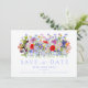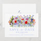 Stunning hand painted watercolor wildflowers and foliage wedding save the date invitation in blush blue, cornflower blue, navy blue, purple, pink, yellow, red, burgundy, magenta and green hues. Personalise the bride and grooms monogram initials on the back of the invitation. Ideal for a unique wedding save the date for a spring or summer wedding. Cornflower blue elegant modern typography script complements the whimsical boho beautiful artwork which includes cornflowers, poppy, cosmos, forget me nots, daisy, billy button and delicate foliage. Chic bohemian wedding save the date invitations perfect for a spring meadow, summer garden wedding. Original artwork by artist Catherine Sweetman
