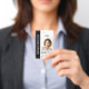 Add a touch of professional polish to your company's identity with this custom badge design. The clean, modern aesthetic features a bold vertical split, providing a sophisticated backdrop for your employee's photo and key information.