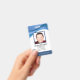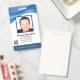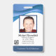 Personalised abstract ID badge with a cool modern wavy blue design above the software engineer or IT repair technician employee photo. Add your own photograph and custom information, including job title, department name, ID number, issue or expiration date and company or business name and logo. Can be customised with your personal security barcode on the back for access and clearance.