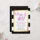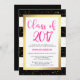 These glam, modern graduation party invitations feature trendy black and white stripes with faux gold confetti and a matching frame. Bright pink typography says "Class of 2017" at the top.