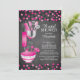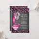 Modern stock the kitchen bridal shower invitation featuring a rolling pin, mixing bowl, spatula, pizza cutter, whisk, vegetable peeler and measuring spoons set on a contemporary chalkboard background with hot pink & black polka dot confetti. Visit our shop to view this invitation in a variety of popular wedding shower invitations.