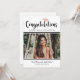 Modern graduation party invitation featuring “Congratulations” in bold script, a rose gold cap accent, and a full-width photo. Personalise the name, school, class year, and party details. The back side coordinates with “Graduation Party” script plus RSVP, date, time, and address lines.