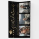 Modern congratulations script 3 photos gold and black with a graduation cap topper.