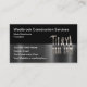 Cool Modern construction service business cards in a unique design silver tone hand tools in the background and brushed silver look banner. online. Designed for a construction contractor, supplier, or home repairs Handyman. Printed on high quality glossy business card paper.