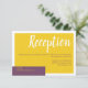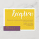 The word Receptions is presented in a bold white calligraphy font over a plain yellow background, while the reception details are written in a modern purple font.