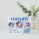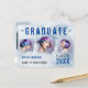 Modern Cool Grunge 3 Photo Blue Grad Announcement Postcard
