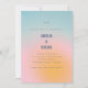 This wedding invitation has a soft, dreamy gradient background that moves from blue at the top through pink and into warm yellow at the bottom, with the couple's names in bold blue type front and center. The back includes a QR code for easy online RSVPs — a modern touch guests will actually appreciate.