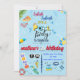 Amaze your guests with this colourful summer cool pool birthday party invitation featuring splish Splash. Simply add your event details on this easy-to-use template to make it a one-of-a-kind invitation. See the store for matching items.