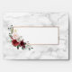 Create the perfect wedding invitation set with this pretty, elegant envelope design, featuring eucalyptus greenery and burgundy and pink floral arrangements, on the flap and on the front, with marble background, both inside and out! To finish it off, a faux copper border around the address box. Part of an invitation suite. Copyright Elegant Invites, all rights reserved.