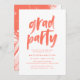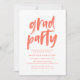 Stylish and modern graduation party invitations featuring a trendy hand-painted brush font and coral abstract brush strokes. Personalise the chic graduation party invites with your custom graduation details for a look that will impress guests!