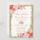 Modern Coral Floral Gold Glitter Wedding Invitation
