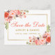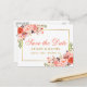 Modern Coral Floral Gold Save the Date Announcement Postcard