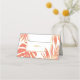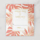 Modern coral and gold leaves leaves tropical wedding escort place card. This pretty design displays a pattern of Split Leaf Philodendron (Monstera deliciosa) or Swiss Cheese Plant and palm leaves in living coral with gold outline. Your text is in a white frame with gold outline. The back includes a gold and white polka dot pattern.